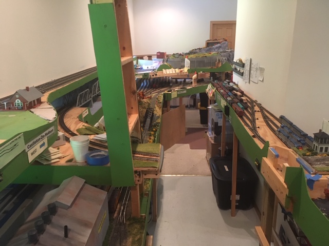 Albany Union Station models the New York Central and Delaware & Hudson in and around Albany, NY about 1966-68. The NYC (upper level) uses a double-ended staging yard representing both from East and West to/from Albany Union Station and Bull Run Yard on the Island. The lower level is D&H which is point to loop from the small Kenwood Yard, (staging south) passing and interchanging with NYC’s Bull Run Yard and the passenger ramp from Union Station heading north thru major urban switching areas at North Albany and Menands on to Colonie Yard and loops (staging north) where trains are considered on the way north to Montreal and other off-layout D&H / B&M destinations. We use (very casually) a 2/1 fast clock (online app) in about 3+ hour sessions to handle 2-3 roundtrip NYC express and two local runs plus 2 D&H roundtrip freights and Breaker Island Branch turn, plus a B&M (via D&H trackage rights) R/T freight. There are up to 10 passenger trains per session as well as mail & express trains with a lot of switching and interchange between NYC & D&H. The passenger schedules represent the actual spring 1967 schedules and consists (with some upgrades). The actual 24 hour schedule is divided into 6 scale-hour increments for each session. The D&H additionally runs two locals that were not in the 1967 schedule as well as ‘thru’ B&M passenger trains extended from Troy for operating interest. Also in that vein via NYC main ‘extended’ to Albany are a Harlem Division local and a New Haven New York-Pittsfield-Albany R/T (depending on which of four sessions is operated for MinnRail) thanks to (in my world) funding by the Tri-State DOT. The layout is 40’ x 28’ two levels around the walls to/from the large Albany Union Station, Bull Run Yard and D&H main/interchange on the ‘Island’ portion.