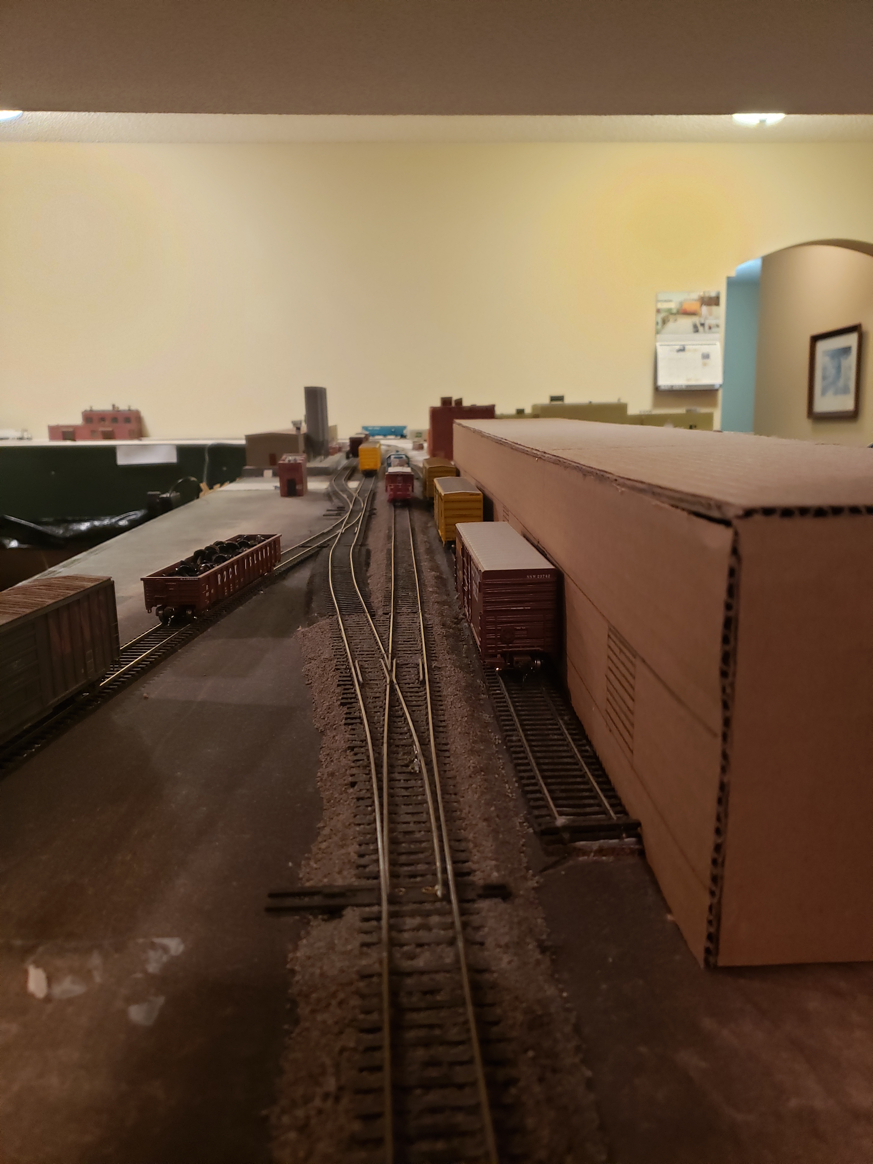 The Missouri Northern is a proto-freelance layout based in the St. Louis, Missouri area. Set in 1985, it is a shortline railroad that operates the eastern-most portions of the former Rock Island line that stretched from Kansas City to St. Louis. The layout focuses on two large industries – a Ford Motor assembly plant and a Brewery which each have multiple switch jobs. A medium sized yard run by the yardmaster handles a local traffic Layout is DCC with digitrax. Walk around, one level shelves along the walls. No duckunders. Car card operation is used to forward freight and it is yard limits so no dispatcher needed.